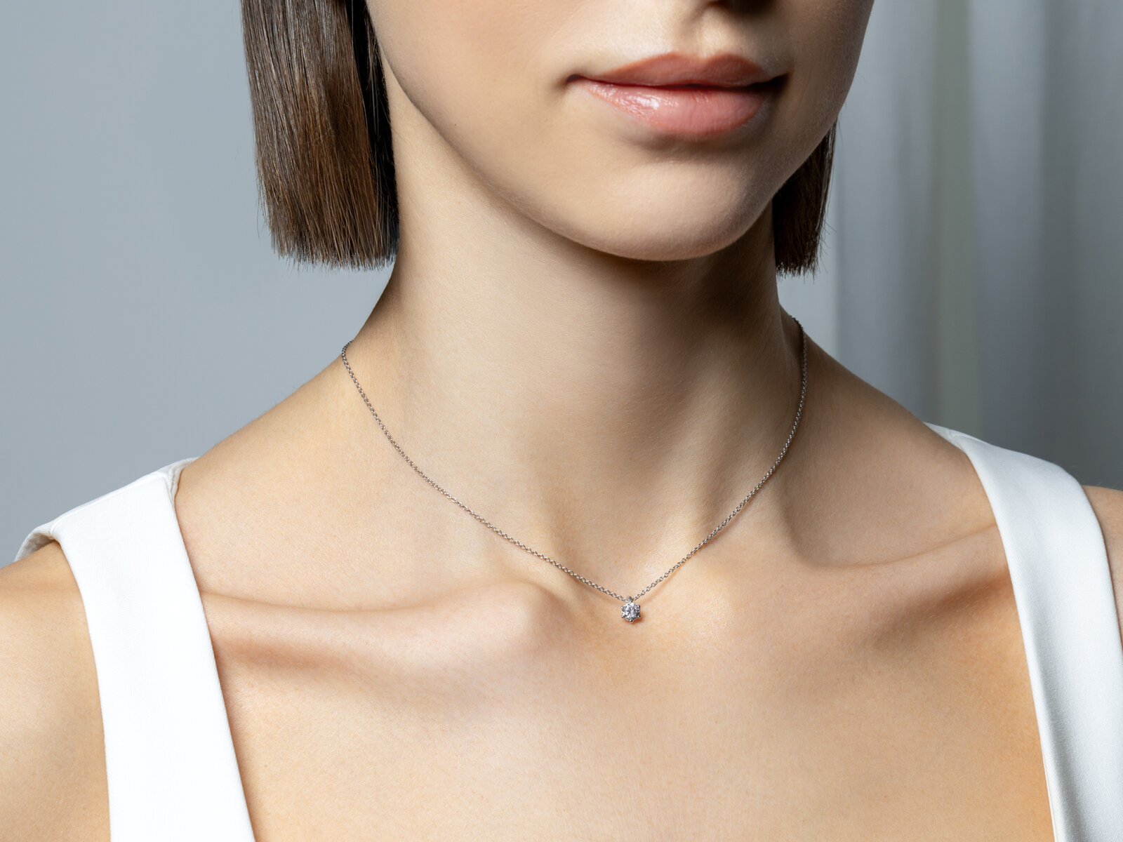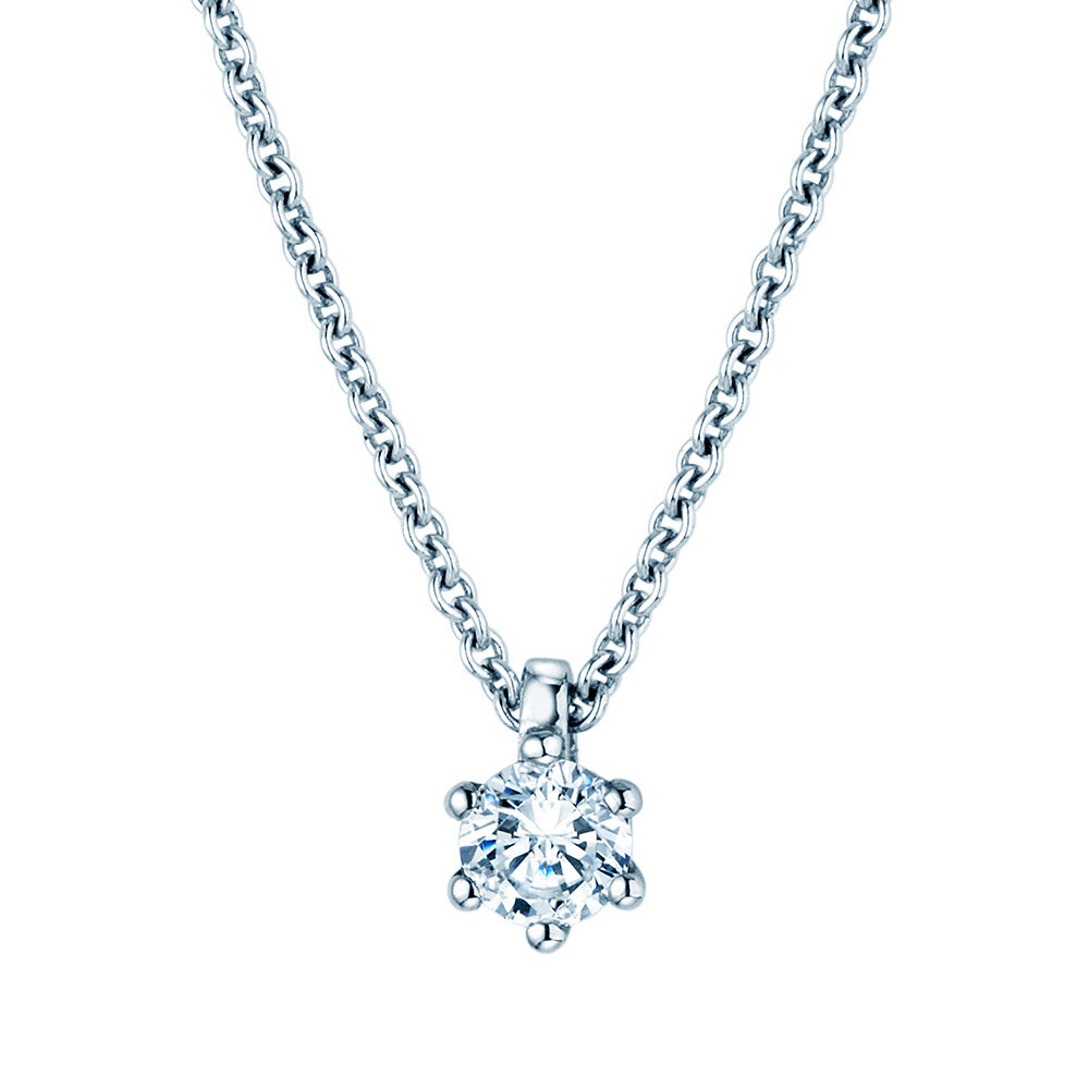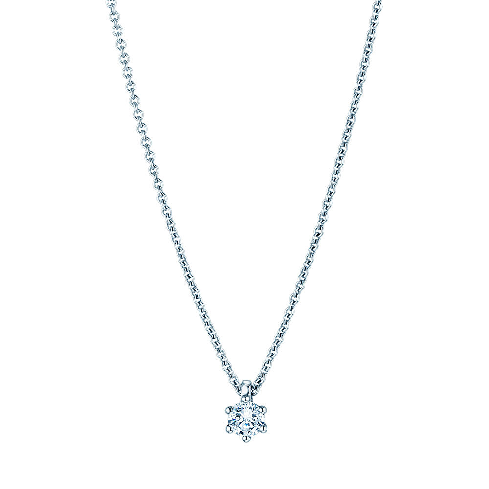 De perfecte metgezel voor elke dag. Solitaire hanger gemaakt van 18-karaats goud of platina. U kunt de diamanten hanger met of zonder ketting bestellen.