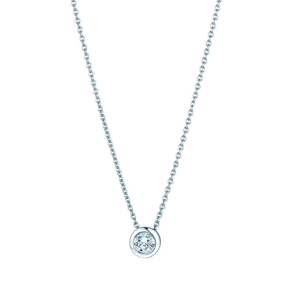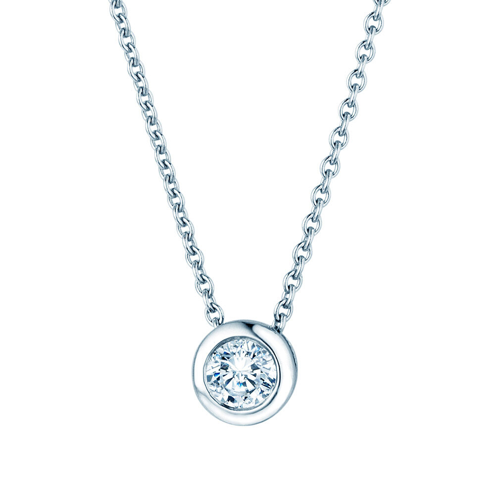 Een klassieker, de Eternal hanger met een kastzetting. De hanger is tijdloos en is een ideaal geschenk. Kies tussen 18k goud en platina en een diamantmaat tussen 0.15-1.00 karaat.
