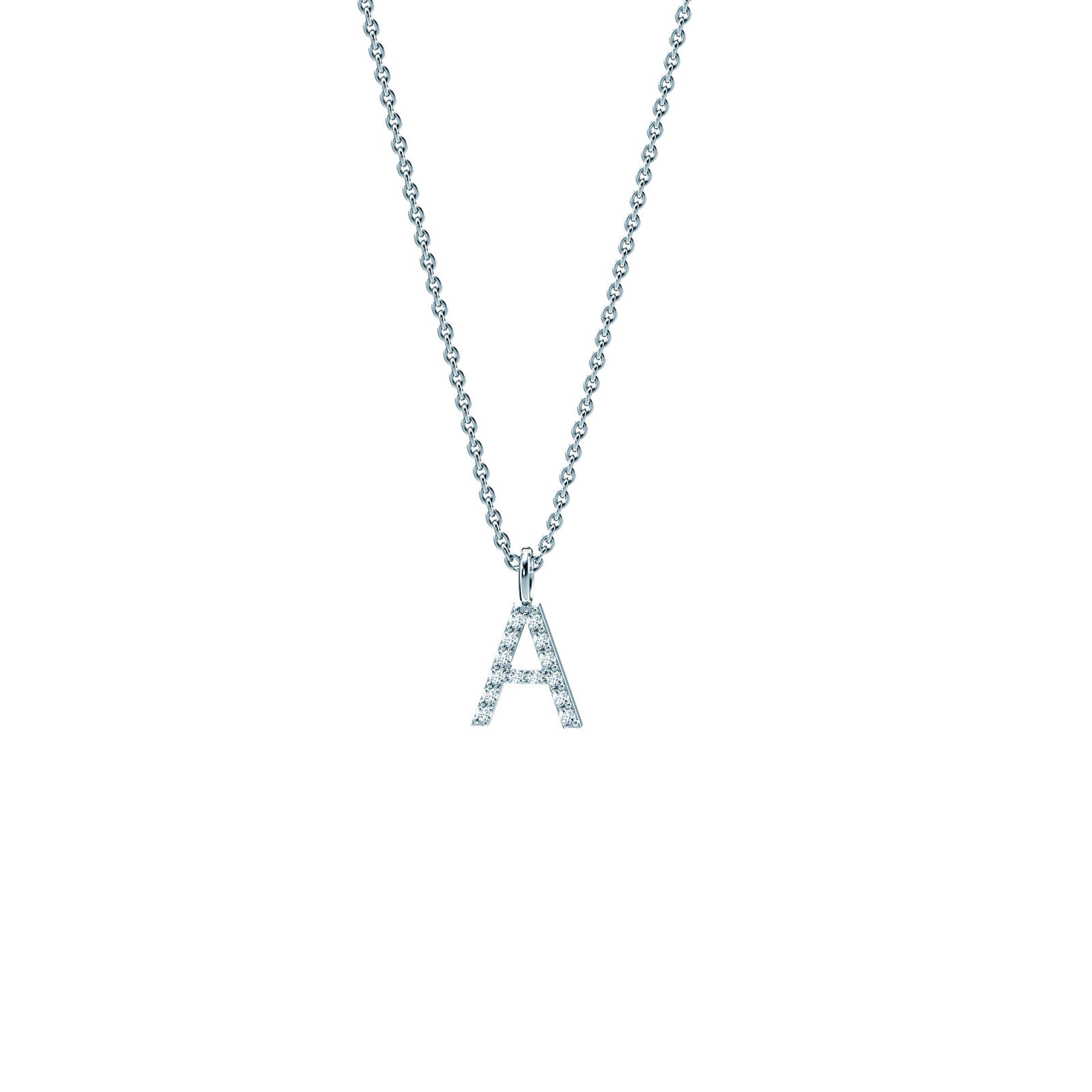 Met de hand gezet met diamanten, maken deze delicaat bewerkte letters indruk met hun klassieke, eenvoudige vorm.