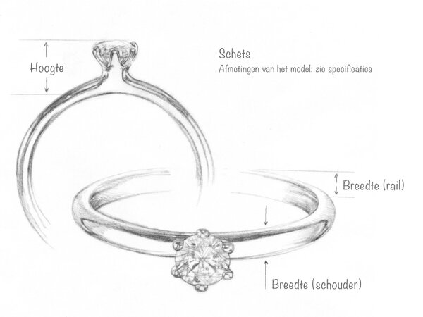 Met het ringsjabloon (pdf) vindt u de ringmaat zonder dat u de ringvinger hoeft te meten. Ideaal wanneer u de mooiste vraag ter wereld als verrassing wilt houden.