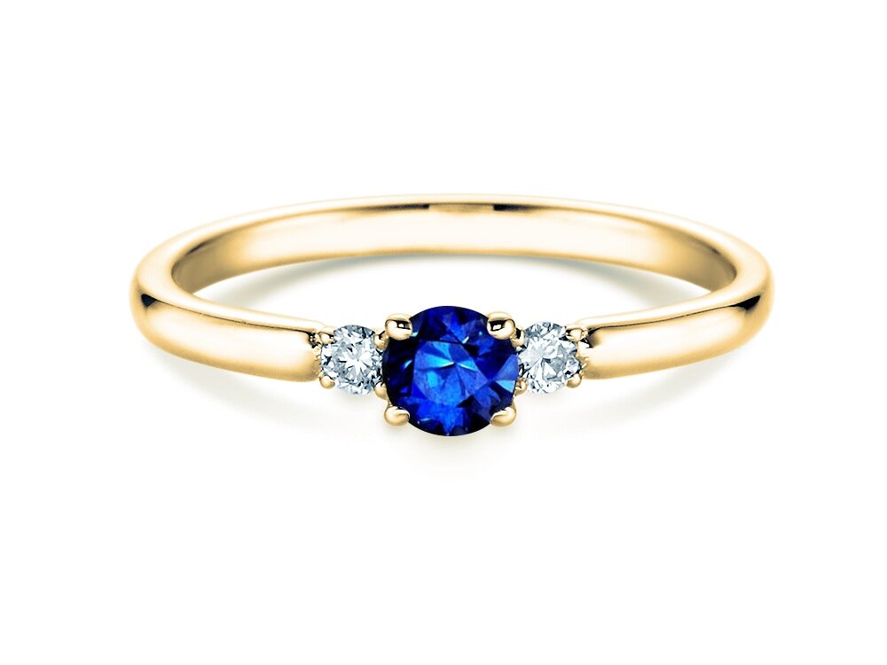9K geelgoud met saffier 0,23ct en diamanten 0,07ct