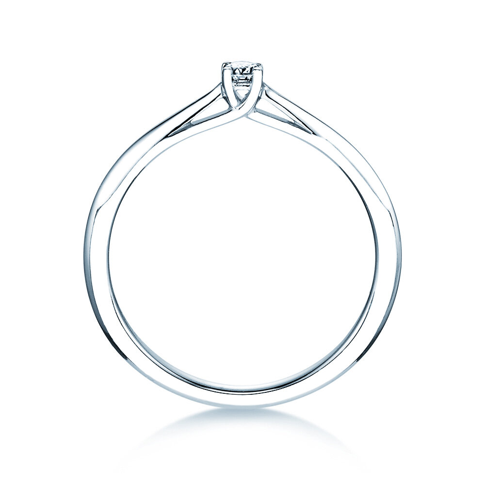 Kunstig verwerkt houdt deze zetting de stralende diamant elegant en eenvoudig vast op de ringband. Zo wordt het invallende licht maximaal gereflecteerd en kan de diamant zijn magische schittering optimaal ontwikkelen. De uitstraling van deze ring is aangenaam ingetogen en tegelijk stijlvol en trendy.