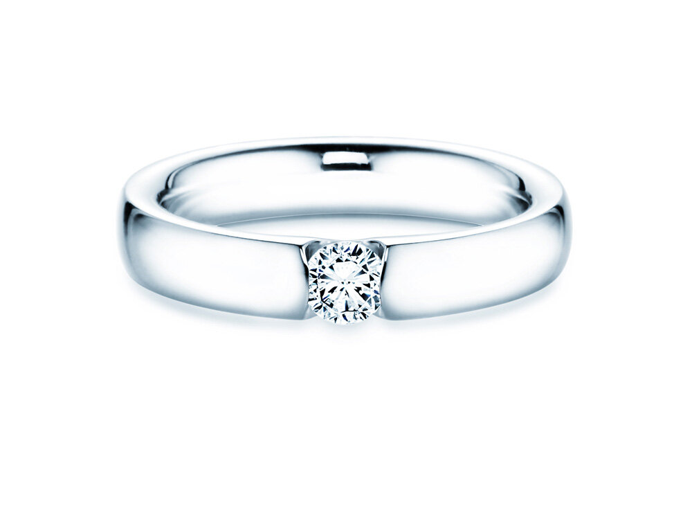 De evenwichtige en duidelijke lijnen van de ringband creëert ruimte voor een uitzonderlijke, open zetting. Deze moderne type zetting combineert twee doorslaggevende voordelen: Ten eerste wordt de intensief glanzende diamant veilig afgesloten, ten tweede valt er door de royaal geopende zijden een overvloed aan licht binnen, zodat de steen zijn bijzondere glinstering kan ontwikkelen.