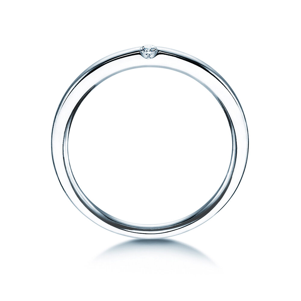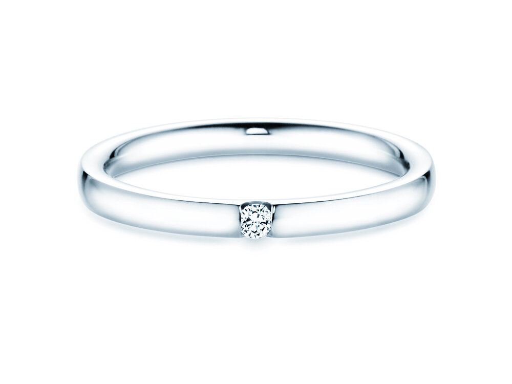 De evenwichtige en duidelijke lijnen van de ringband creëert ruimte voor een uitzonderlijke, open zetting. Deze moderne type zetting combineert twee doorslaggevende voordelen: Ten eerste wordt de intensief glanzende diamant veilig afgesloten, ten tweede valt er door de royaal geopende zijden een overvloed aan licht binnen, zodat de steen zijn bijzondere glinstering kan ontwikkelen.