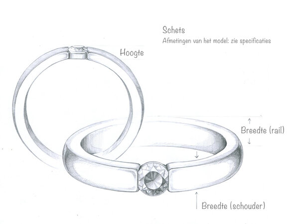 Met het ringsjabloon (pdf) vindt u de ringmaat zonder dat u de ringvinger hoeft te meten. Ideaal wanneer u de mooiste vraag ter wereld als verrassing wilt houden.