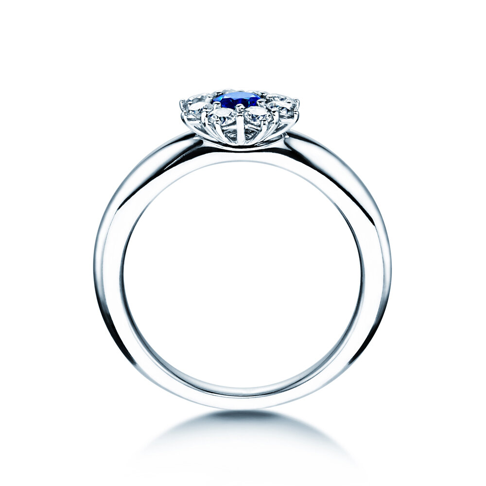 18K witgoud met saffier 0,33ct en diamanten 0,40ct