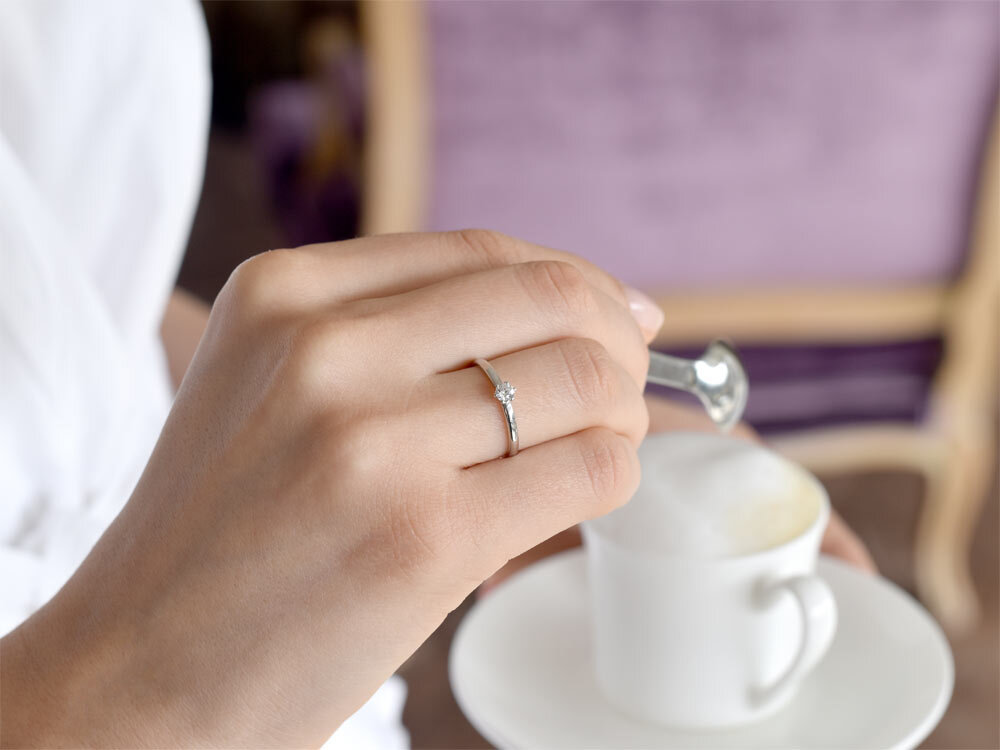 Met het ringsjabloon (pdf) vindt u de ringmaat zonder dat u de ringvinger hoeft te meten. Ideaal wanneer u de mooiste vraag ter wereld als verrassing wilt houden.