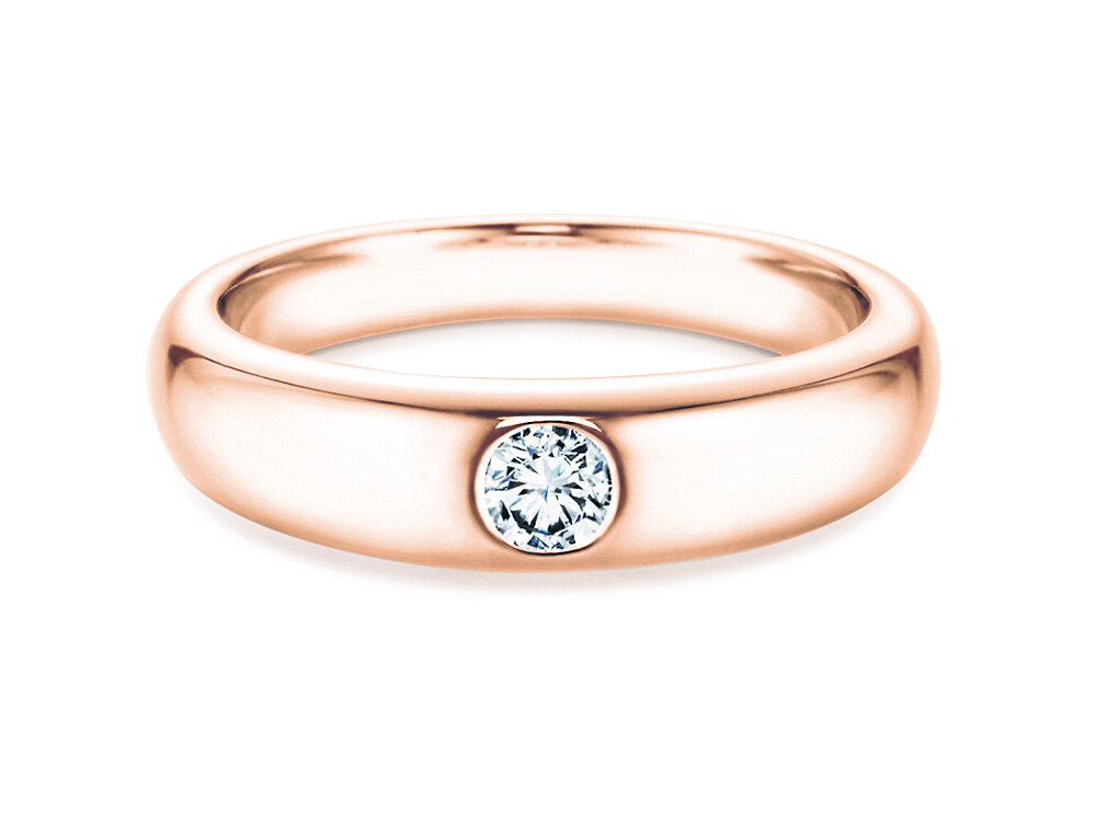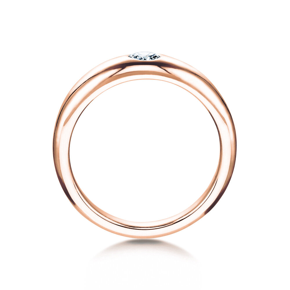 De ringvorm is eenvoudig en klassiek –men kan het als zodanig klassiek beschouwen. De afgeronde ringband wordt geaccentueerd door een subtiel ingelegde diamant, die het model promis een echt topstuk maakt. De heldere diamant wordt beschermd door de ringband. Daarom is dit model zeer goed te dragen in het dagelijks leven.