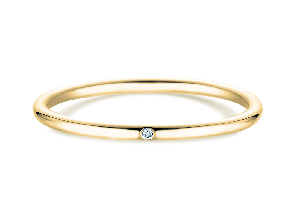 Eenvoudig, klassiek en delicaat – de Promise petite ring betovert met zijn eenvoudige elegantie. De afgeronde ringband wordt geaccentueerd door een subtiel ingelegde diamant, die het model een echt topstuk maakt. De heldere diamant wordt beschermd door de ringband. Daarom is dit model zeer goed te dragen in het dagelijks leven.