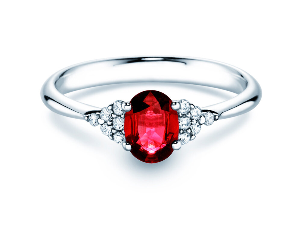 Robijn: Deze edelsteen kenmerkt zich door zijn intense rode kleur, ontstaan door sporen van chroom. Robijnen behoren tot de korundgroep, zijn net zo hard als saffieren en staan symbool voor liefde en passie.