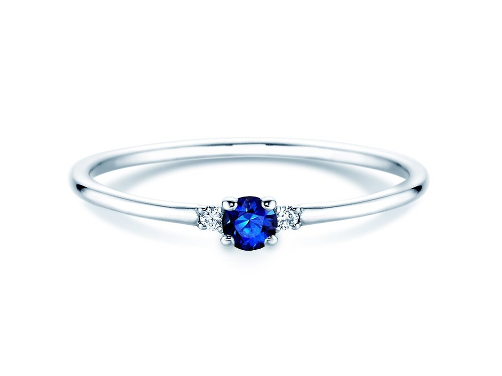 14K witgoud met saffier 0,08ct en diamanten 0,02ct